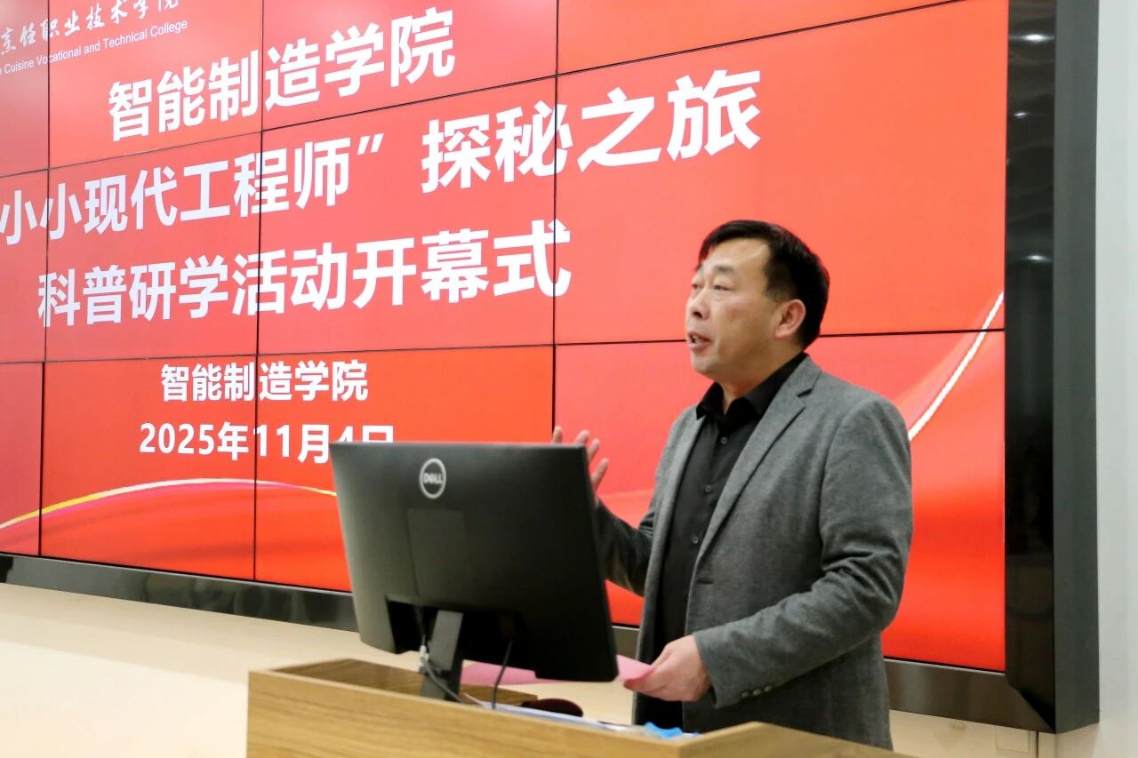11月4日,长垣烹饪职业技术学院举行 “小小现代工程师探秘之旅” 科普开放日活动。智能制造学院院长朱明悦、东英学校小学部校长李新等领导出席活动,我校师生代表与东英学校小学部150余名师生共同参与。