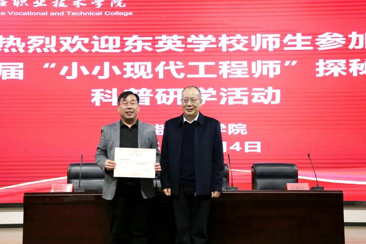 颁奖典礼上,东英学校小学部获颁 “优秀组织单位”,各班级分别荣获“特色团队”荣誉称号,全体参与学生均获得 “小小现代工程师” 证书。这些荣誉不仅是对参与师生的肯定,更成为校地合作育人成果的具体体现。