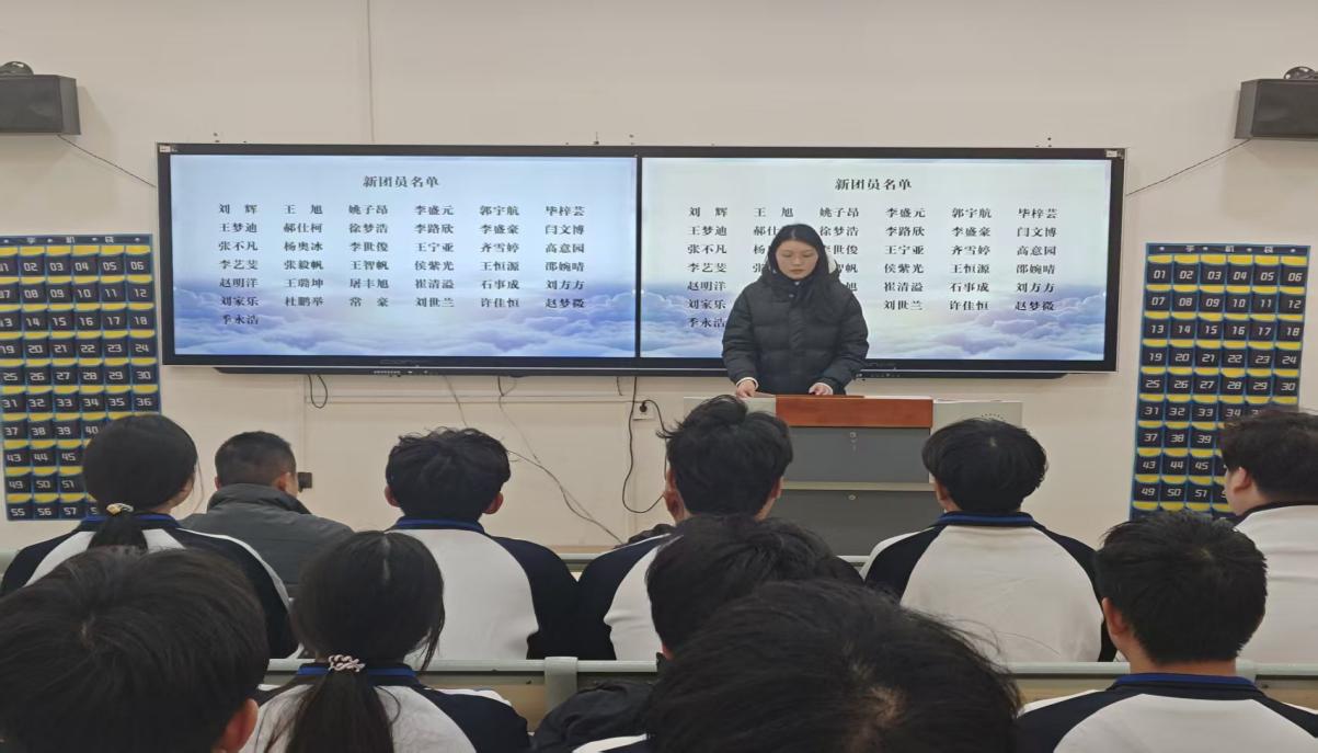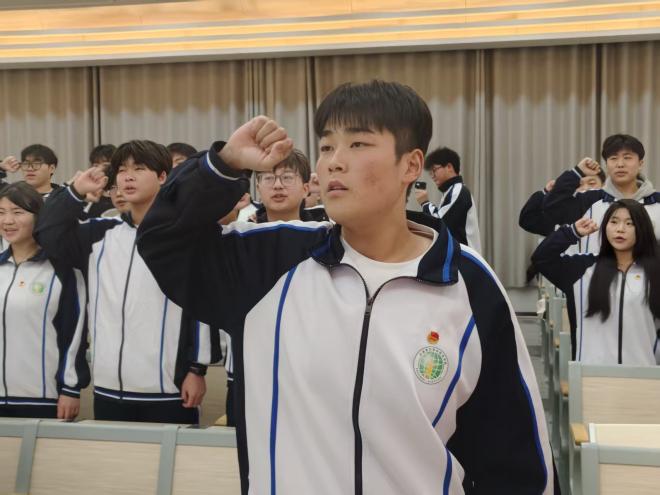 仪式在雄壮的国歌声中拉开序幕。全体师生肃立,齐声高唱中华人民共和国国歌,用歌声表达对祖国的无限热爱与忠诚;团总支负责人侯梦瑶宣读了2025年新团员名单;优秀团员代表李博栋同学带领新团员庄严宣誓;新团员代表刘家乐同学代表新团员发言,分享自己对共青团的认识与加入组织的激动心情,并表示将以实际行动践行团员责任,在学习和生活中发挥模范带头作用;优秀团员代表李博栋同学结合自身经历,分享了作为一名老共青团员的成长与感悟;最后,学院副院长田高磊向新团员表示祝贺并提出了希望与要求。他强调,共青团是党的助手和后备军,新团员们要坚定理想信念,锤炼过硬本领,在实现民族复兴的赛道上奋勇争先。