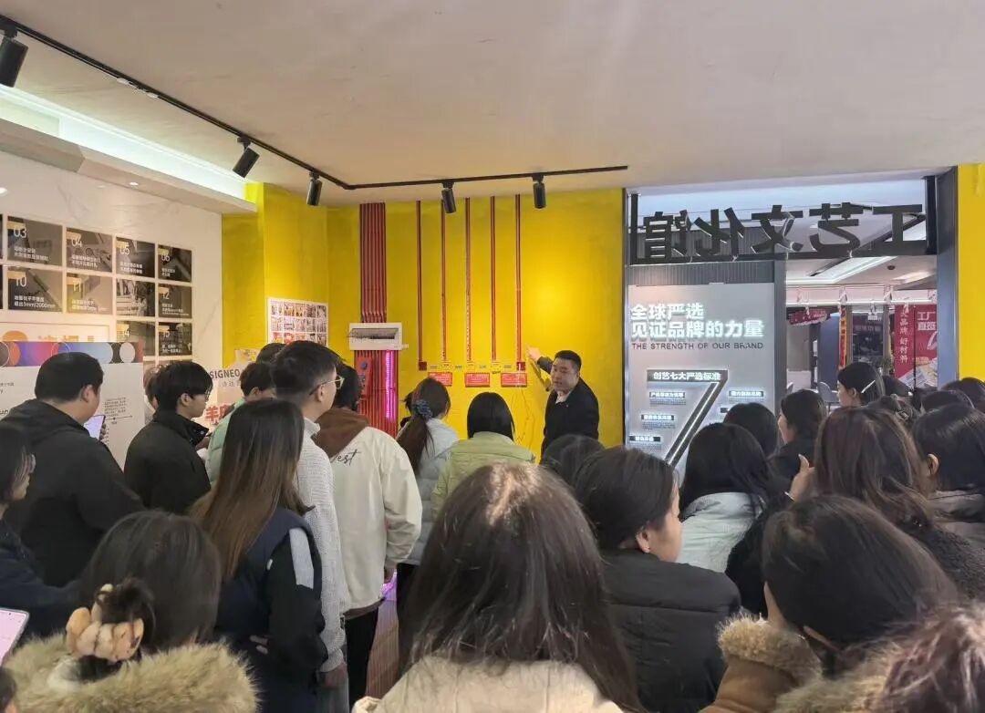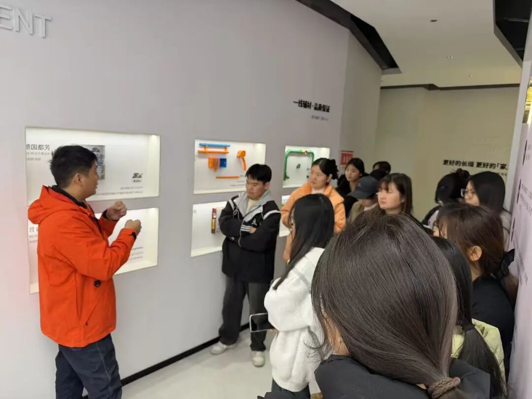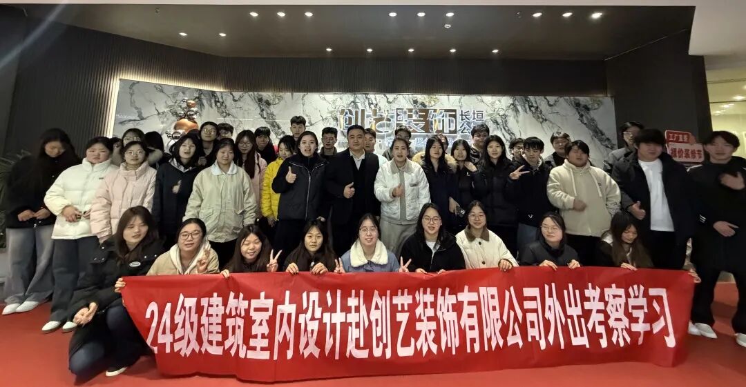 坚持立德树人,加强校企合作,注重能力培养,不断提升教育教学质量是我们职业教育的根本要求。为了提高专业课程教学效果,近期,我院室内设计教研室主任杜翠娟和专业教师郜贝带领2024级建筑室内设计专业全体学生走出校园,分别到长垣市创艺装饰有限公司和长垣市金螳螂装饰有限公司开展为期一周的专业考察,实地感受建筑室内设计行业工作环境、最新装饰材料、最新施工工艺,受到了相关企业的欢迎和热情接待,也激发了学生们学习专业的极大热情,取得了良好的教学效果。
