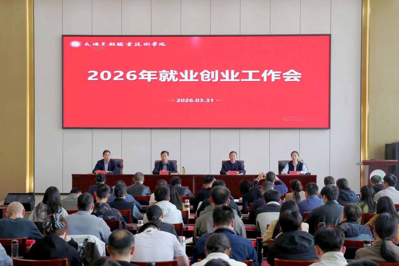3月31日,我校召开2026年就业创业工作会,全面部署毕业生就业与岗位实习工作。校长王金台,副校长赵玉奇、王东杰出席会议,就业服务中心、教务处、学工处、各二级学院负责人及全体辅导员参会。