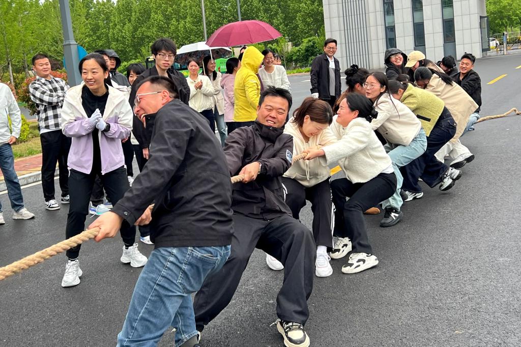 欧阳豫樊宣布比赛正式开始,赛场瞬间沸腾。各参赛队伍精神抖擞、斗志昂扬,队员们紧握长绳、脚蹬实地,心往一处想、劲往一处使,在一声声整齐划一的口号中奋力拼搏。场外加油声、呐喊声、欢呼声此起彼伏,充分展现了我校教职工团结协作、奋勇争先的良好精神风貌。