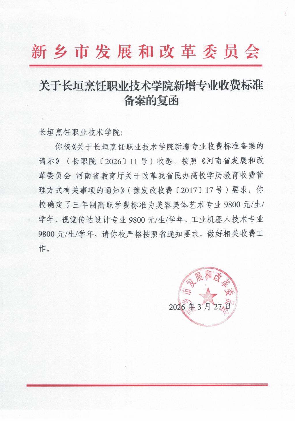 下一条:关于长垣烹饪职业技术学院收费标准的公示